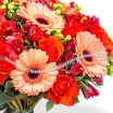 *допустима замена оттенка роз и гербер от ярко-оранжевого до кремового, в случае отсутствия альстромерии - замена на кустовые хризантемы в красном, желтом или кремовом оттенке